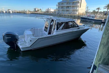 The new C-248 Coupe from Cutwater Boats presents a beautiful, contemporary twist on a classic Downeast design. This versatile outboard-powered cruiser offers an abundance of features designed to make cruising, fishing, and entertaining fun and stress-free. The C-248 C offers a 360-degree view from the helm as well as an innovative aft bulkhead window that opens, allowing the dinette seat to transform into a rear-facing cockpit seat. Onboard the C-248 C you’ll enjoy all the comforts of home with a private stateroom, head, and galley featuring a sink with hot and cold water, stove top, microwave, and refrigerator/freezer.