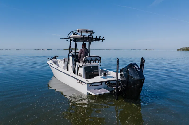 This 2024 Dorado 25 features a clean flat-deck layout and is powered by a Mercury 300 with just 115 hours. Well optioned and thoughtfully rigged, this boat blends inshore performance with versatility and comfort, making it a strong all-around platform.