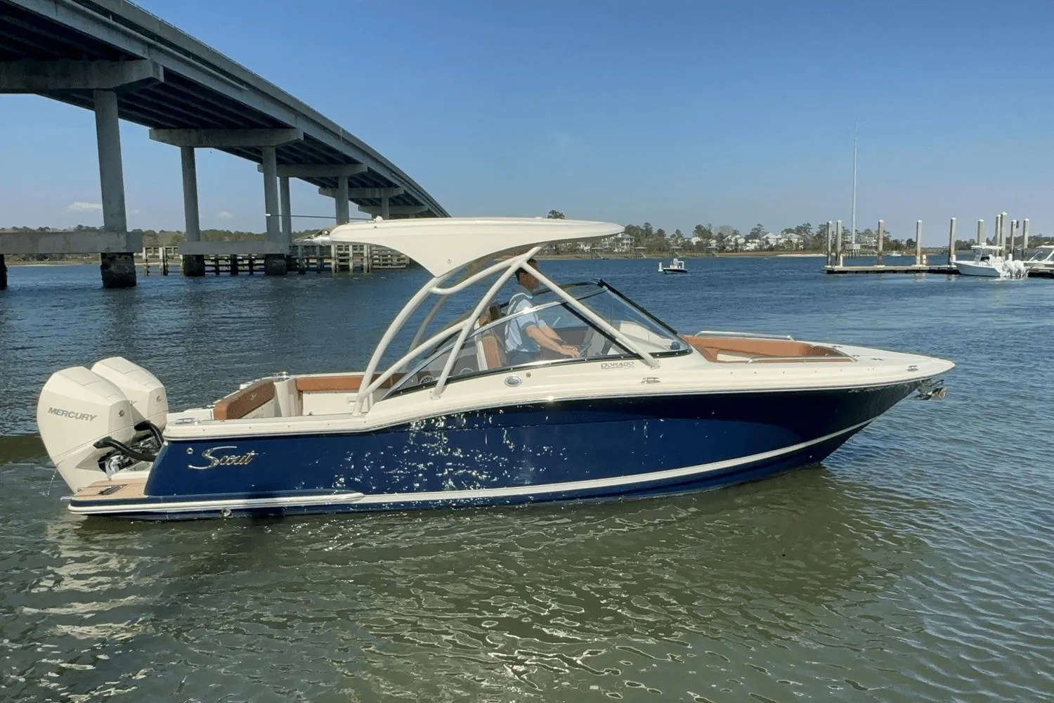 2023 Scout 255 Dorado – Premium Dual Console Boat. Ideal for both family leisure and adventurous water sports. Whether you’re cruising on a calm day, chasing the perfect wave, or fishing off the coast, the Scout 255 Dorado ensures comfort and performance in all conditions.