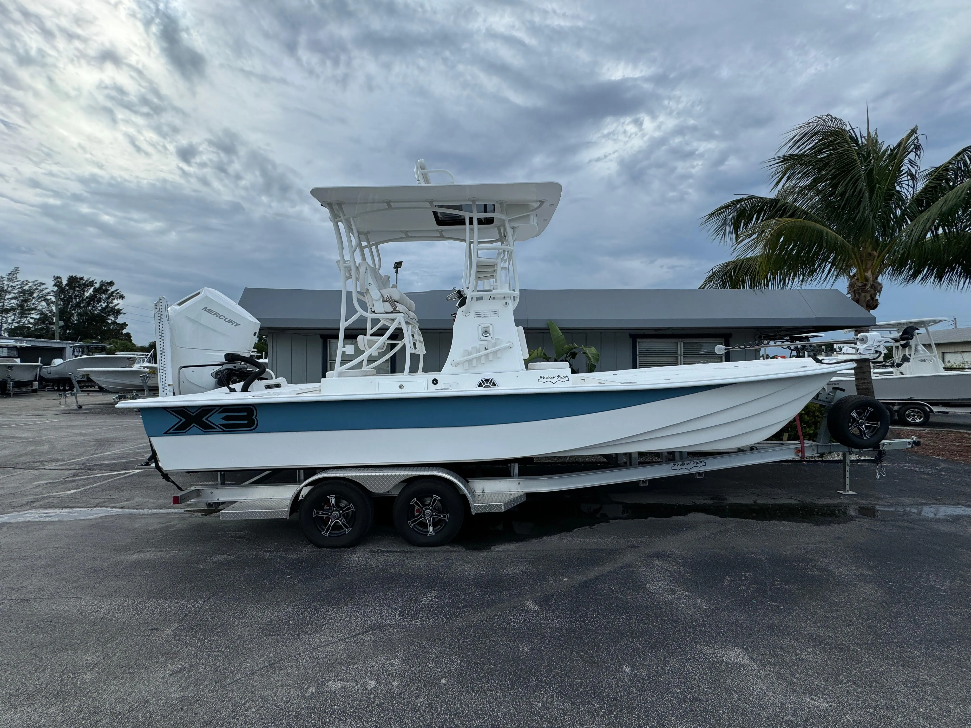 The Shallow Sport 25’ X3 remains one of the most stable and versatile inshore/offshore fishing platforms on the market. Its distinctive tri-hull design handles chop with ease while staying nimble in skinny water — capable of running on plane in as little as 5” of water. This lightly used 2025 model is fully equipped with premium electronics, audio, and rigging, and includes transferable factory warranties.