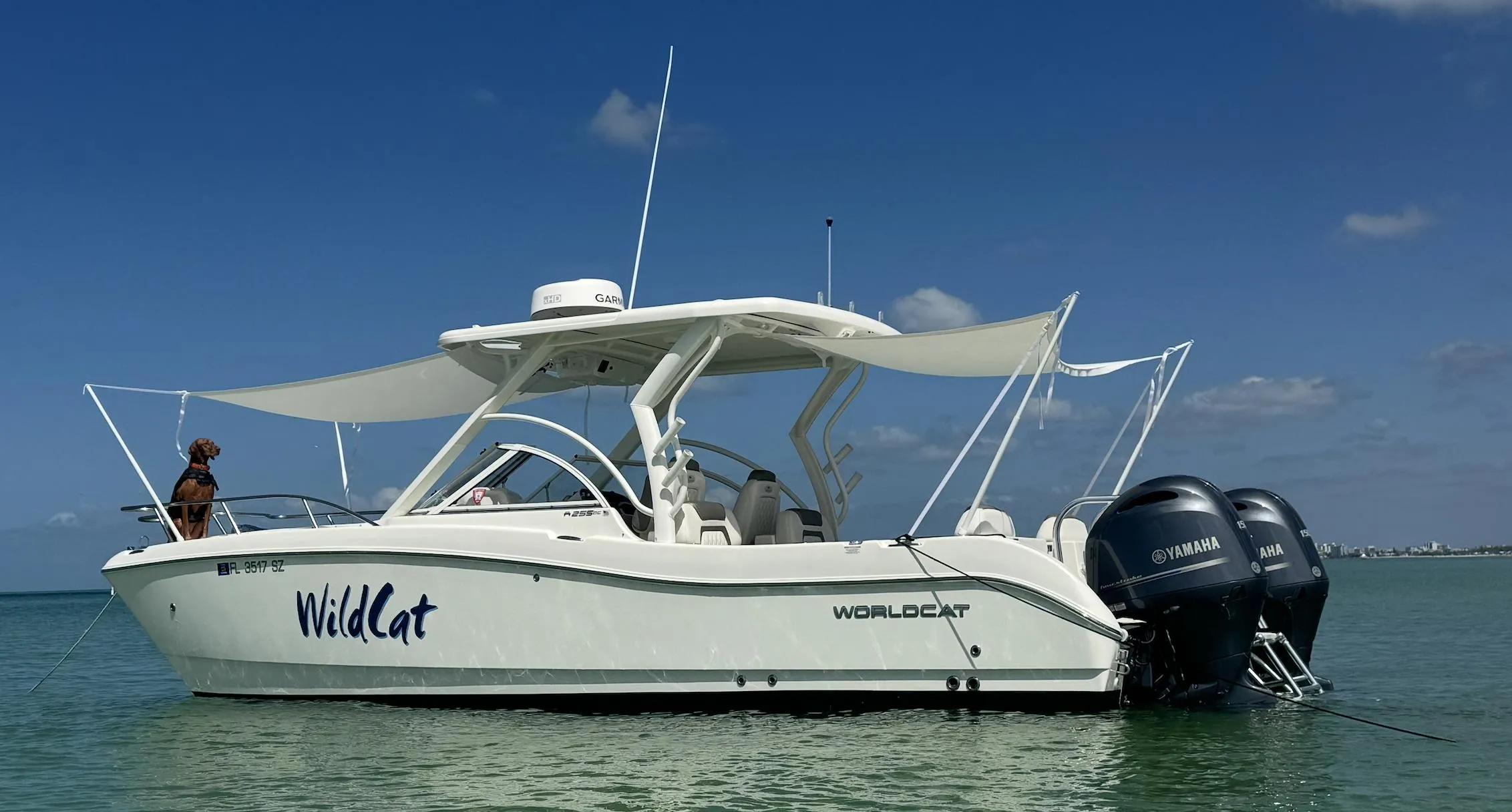 Anglers will appreciate the removable 8-rod holder mounted aft on the hardtop (as shown in the gallery), while everyone aboard will love the signature swim/dive ladder—a favorite feature among World Cat owners for easy boarding in and out of the water.