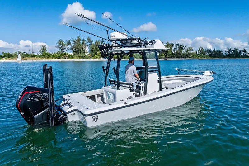 Elevate your boating experience with this pristine 2020 Barker Boatworks 26 Open, designed for versatility and performance. Whether you’re chasing inshore catches, tackling offshore fishing, or unwinding at the sandbar, this boat delivers it all with style and power. Equipped with a robust Mercury Racing 450 engine (only 214 hours), it’s primed for your next adventure.
