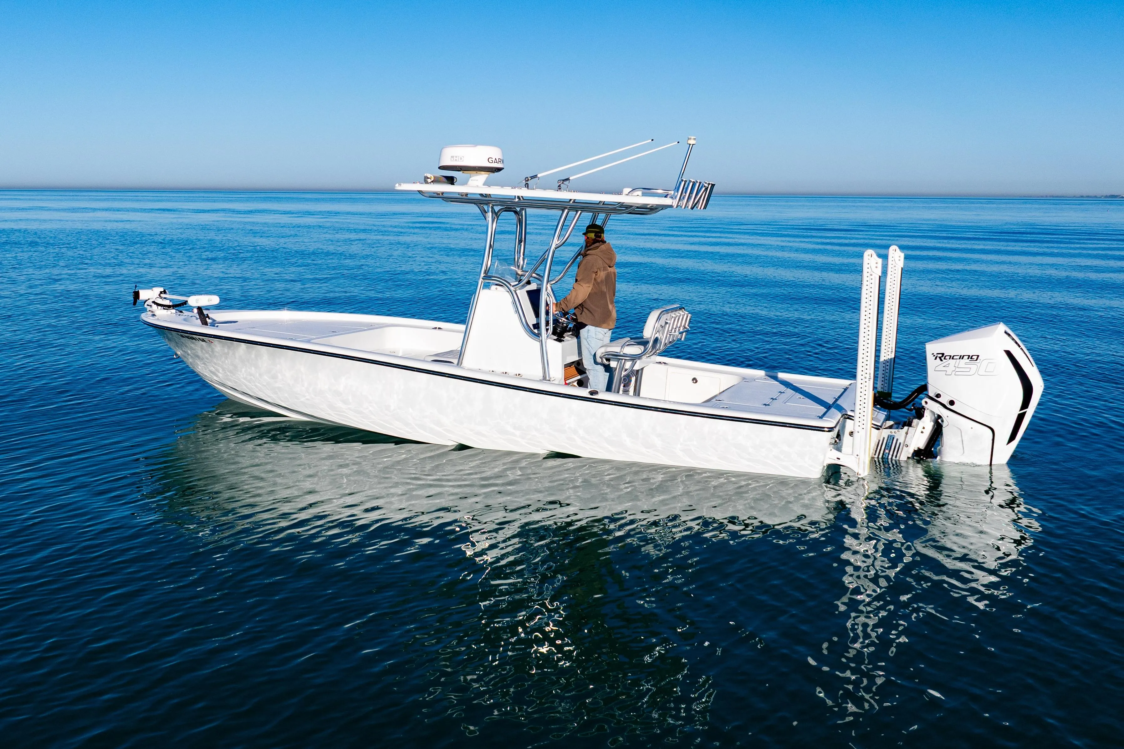 This boat is loaded and turn-key, with much more premium features and thoughtful details that serious anglers and boaters appreciate. Known for its fishability, spacious deck layout, and rock-solid build quality, the Calibogue Bay remains one of the most sought-after hybrid bay boats on the market.
