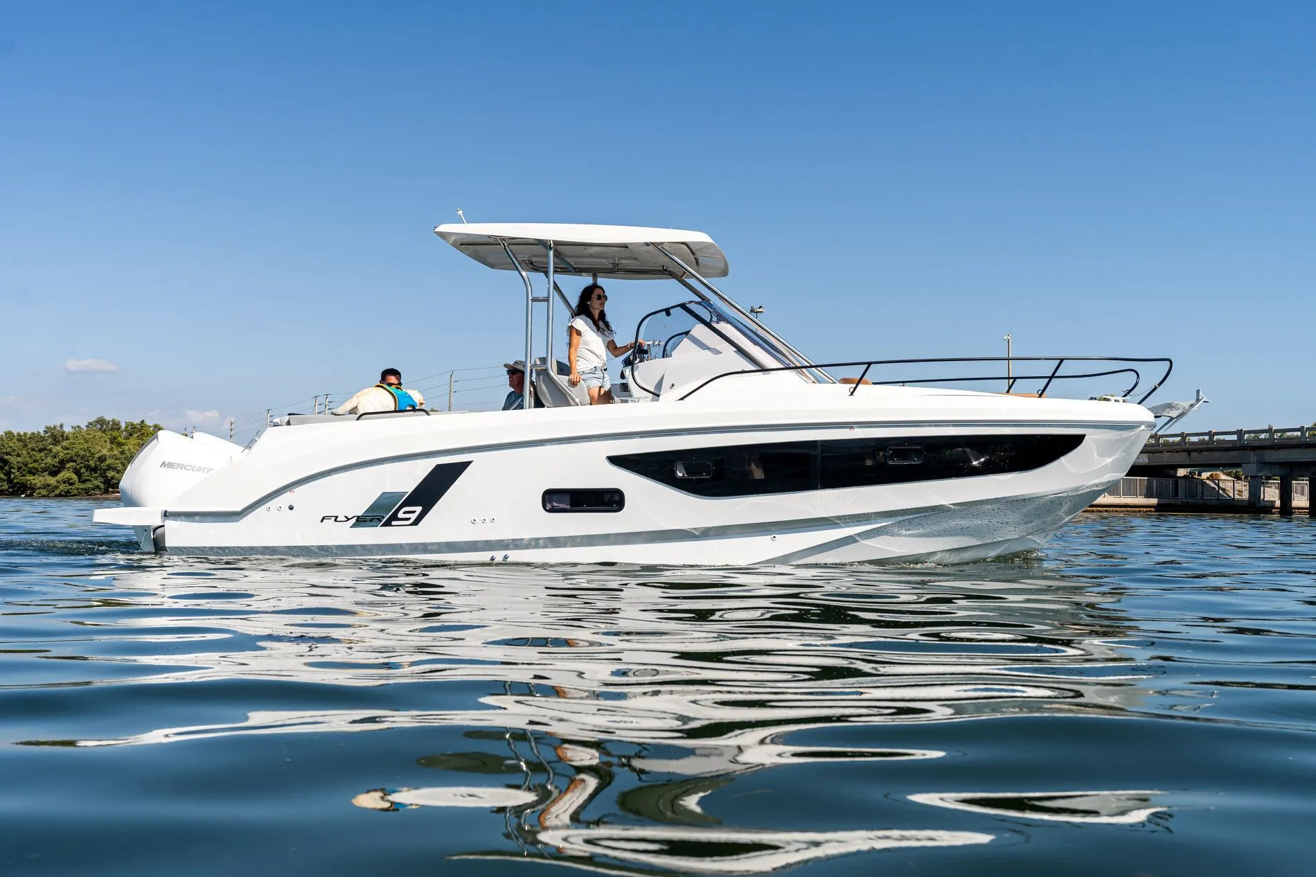 The Beneteau Flyer 9 Sundeck is a modern take on the versatile day boat, designed for boaters who want a combination of comfort, smart use of space, and a manageable size. With its sleek profile and thoughtfully laid-out deck, the Flyer 9 Sundeck has become a favorite among families and couples looking for an accessible entry into the cruising lifestyle. At just under 30 feet, it packs in more than you might expect—offering sunbathing areas, a cabin with overnight accommodations, and the performance of twin outboards.
