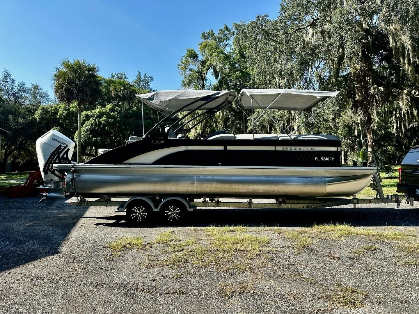 Experience luxury and performance on the water with this pristine 2023 Bennington 26LX, powered by a Mercury 5.7L V10 400hp Verado with only 69 hours at the time of listing. This premium tritoon from Bennington's LX Sport Line combines sleek design, cutting-edge technology, and exhilarating power, perfect for cruising, watersports, or entertaining family and friends. Notable options include Rockford Fosgate Stereo, Wakeboard Arch, In-Floor storage, and more! Meticulously maintained with low hours, freshwater only, this boat is ready for your next adventure. Paired with a tandem axle trailer, she is ready for any adventure.
