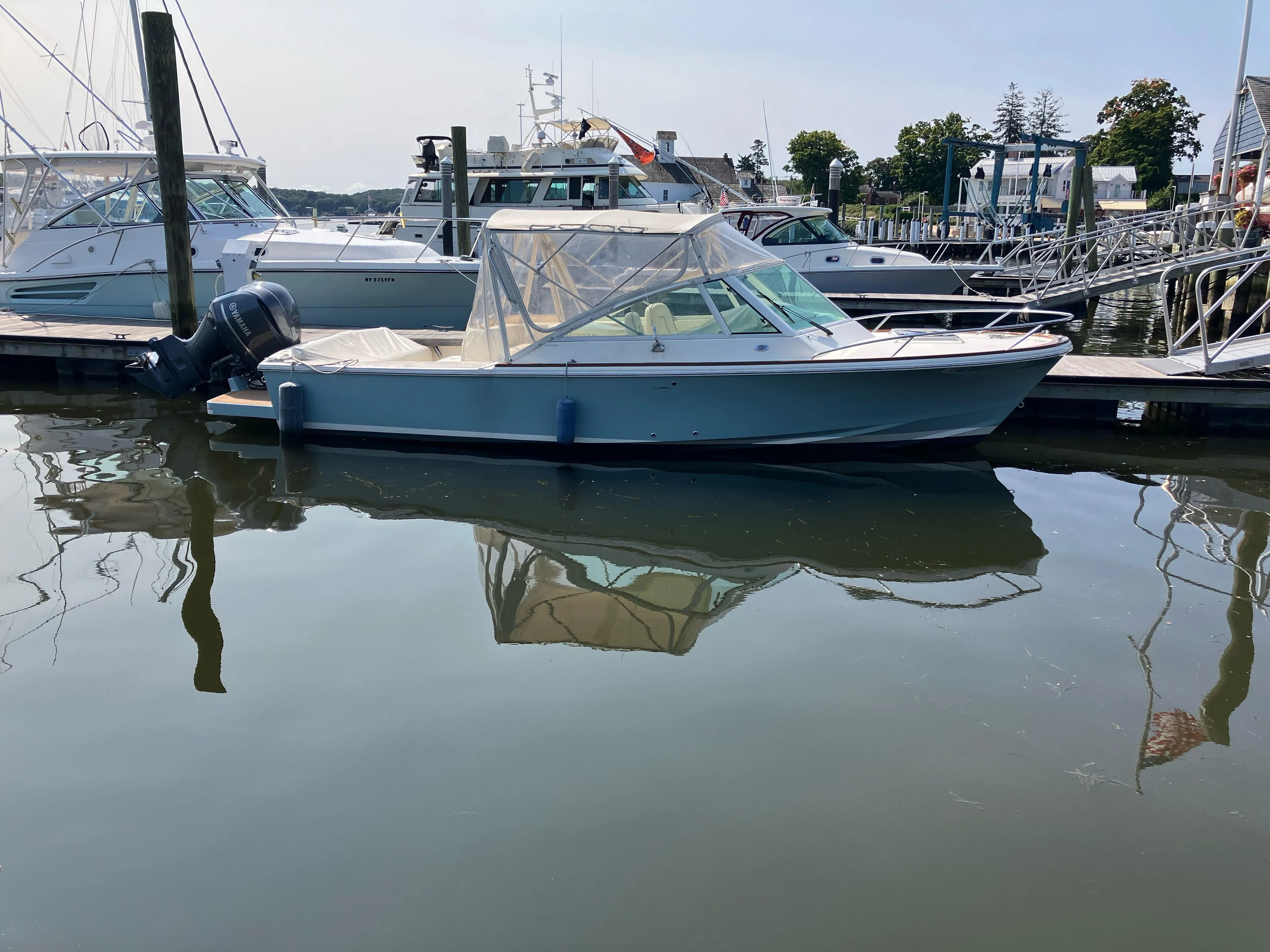 The 2019 Harrier 26 represents a remarkable and rare opportunity in the brokerage market, a testament to Prestige Yacht Sales' commitment to offering exceptional vessels. This particular model is powered by a single Yamaha 300, contributing to its status as one of the most sought-after day boats ever crafted by Hunt. Built on the renowned C. Raymond Hunt-designed hull, the Harrier 26 is celebrated for delivering one of the smoothest and driest rides within its class, a hallmark of superior design and engineering. This exquisite yacht is equipped with luxurious features, including a bow thruster, Garmin GPS, and the classic “Harrier” teak toe rail and coamings, complemented by full canvas. Furthermore, it has been meticulously cared for, stored indoors each winter, and comes with a transferable Yamaha extended warranty, instilling confidence and trust among potential buyers. Envision the adventures that await on Long Island Sound with this Harrier 26, as it stands ready for new owners to create unforgettable memories, all while benefiting from the personalized service that Prestige Yacht Sales is proud to provide.