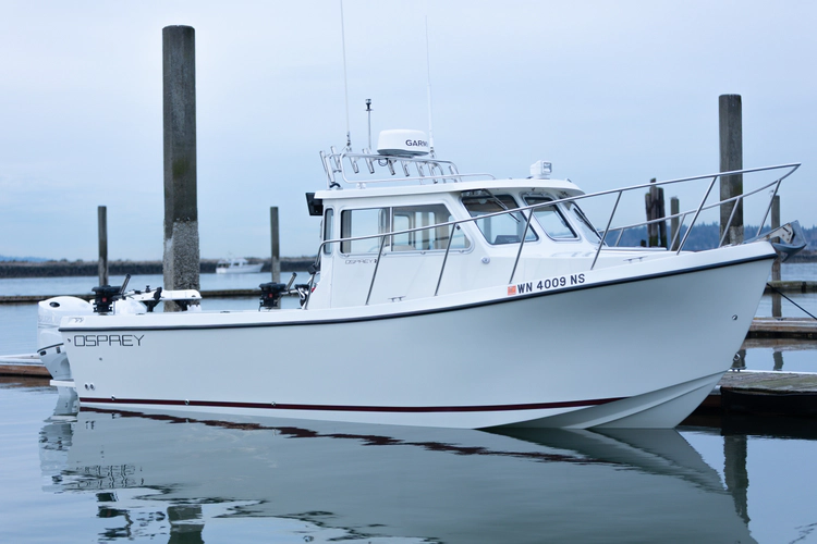 Well known for their deep-V hull, raised bow, and enclosed pilothouse, Ospreys are legendary for their ability to handle serious weather while keeping you comfortable and protected. The enclosed cabin makes this an exceptional year-round cruiser, while the expansive cockpit—one of the largest in her class—makes her a phenomenal fishing platform.