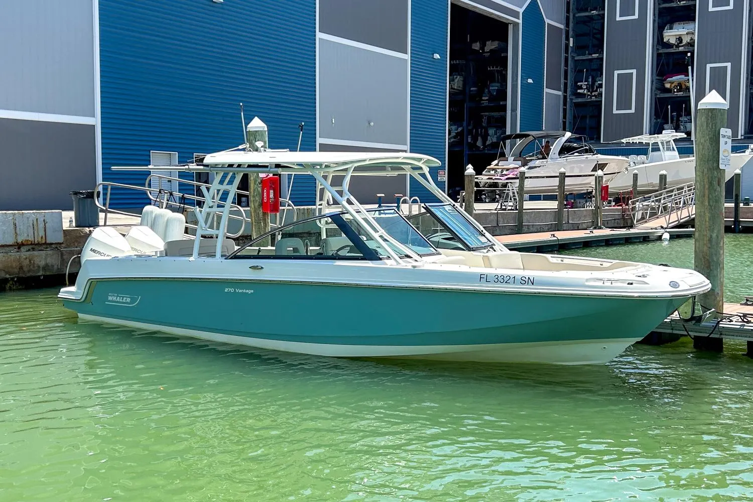 New to Market is this nice 2020 270 Vantage. Powered with Twin White Mercury 250HP JPO (Joystick, Auto Heading/Pilot and Sky Hook) with low hours. Loaded with many Boston Whaler standard features and options including: