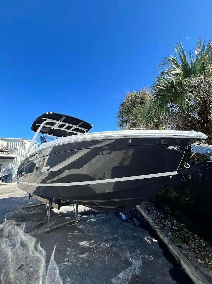 Stay powered up and connected with the built-in battery mantainer/charger and wireless phone charger/holder, keeping your devices ready for capturing every memorable moment. The sink console in the head area includes a transom shower, providing a refreshing rinse after a day of fun in the sun. Additional highlights include a stylish boarding ladder, cockpit tonneau cover to protect your interior from the elements, and thoughtfully designed hull sides that not only contribute to the boat's aesthetic appeal but also enhance its hydrodynamic performance.