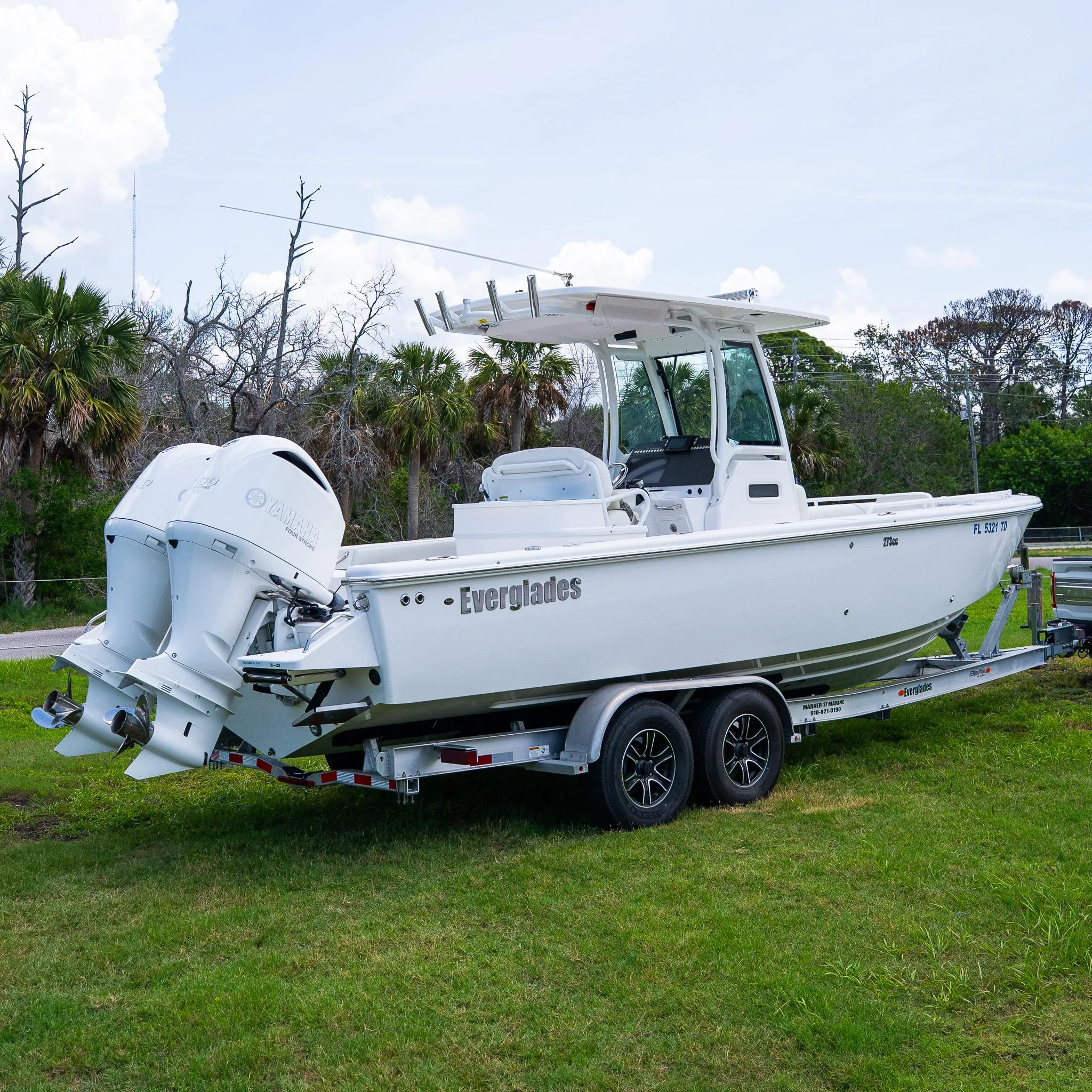 Florida Native Boat Sales proudly presents this immaculate Everglades 273CC. This boat has barely been used, been meticulously cared, and it shows! The engines have been serviced throughout ownership and are still under Yamaha’s YES warranty until 2/2027. The 273 CC is a boat that can do-it-all! From family comfortable family boating day, to inshore fishing and running beyond into the bluewater, the 273 is fully capably. This turn-key hybrid bay boat also includes a custom built Ameratrail Trailer, allowing you to easily transport or store it wherever you’d like! Take advantage of this opportunity to purchase a like-new boat at a huge savings when compared to brand new!