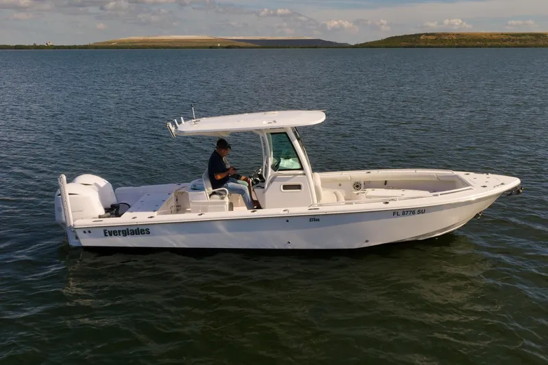 Loaded with Dual Garmin GPSMAP 8616xsv, Garmin VHF, GT51M TH Transducer, 8' Power Pole, Rod/Cup Holder Combo (4), 2 Fwd. and 2 Bow, Underwater Lights, Spectrum Quattro – RGBW, 2 Post Bow Shade in White, Optimus 360 Joystick w/ Seastation, Covers for Forward Console Seat, Console and Helm Seat. Bottom Paint added in April 2023. Engines and Hull are regularly serviced and maintained by Everglades authorized service dealer. All records of maintenance and repairs are available upon request. Cleaned and detailed regularly. Boat is kept on a lift on a quiet residential canal.
