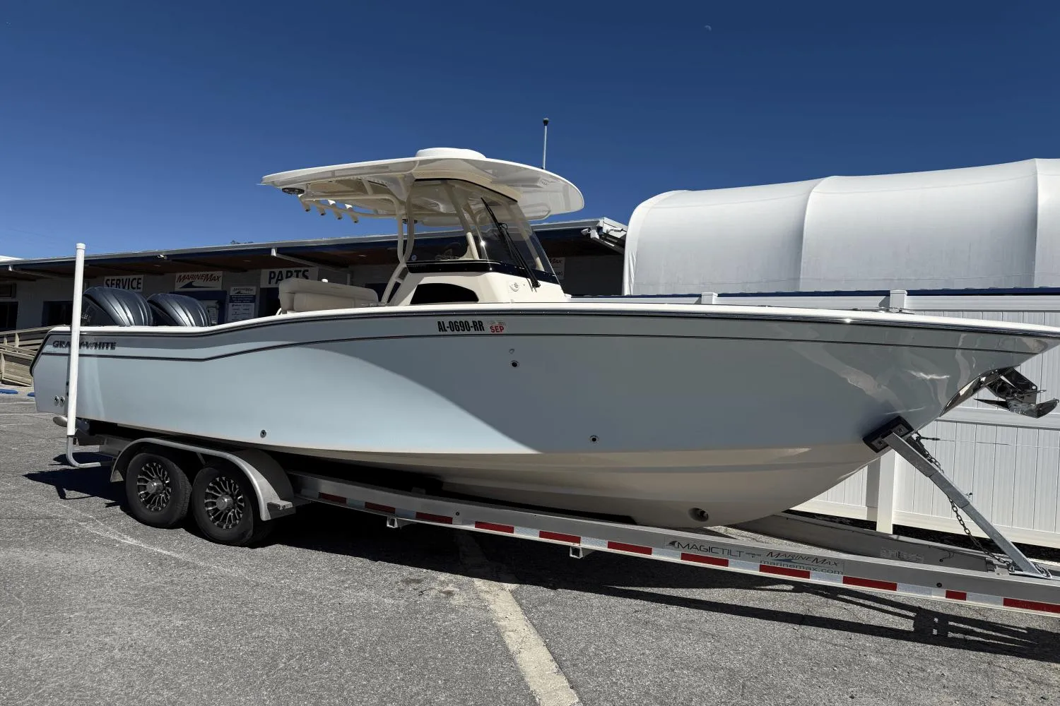 This 2022 Grady White 271 Canyon just hit the open market and is pwered by a set of Twin Yamaha 300's with only (12) hours which I sold new. She still like new in the Box. I customer order this 271 Canyon for a older gentemen and is loaded with Options. She has a Garmin Electronics package with Twin Garmin 8612's monitors with GPS, Map Plotter, Sounder with ClearVu & SideVu. Garmin Closed Dome Radar, Garmin 315 VHF with Command Mic, Yamaha Auto Pilot, Helm master joystick for easy docking with Fish Point, Drift Point, Set Point for holding you over your spots, Bow Thruster, Hard top with Multi Color lights in the Hard top, Spreader Lights front and rear, Fusion Stereo, Front Bow Shade, Windlass with polish steel anchor, Large Head with Pump Out Head, Teak and Holly on the floor, storage, Live Well, Tackle storage, Dockside power and battery charger, Ocean Mist blue Color Hull with under color under the hard top to make it pop. Aft fold down seat, forward seating with back rest, raw water wash down, fresh water shower, Magic tilt trailer Model TALS-28110 with V-Block and custom wheels. Don't Miss this One.