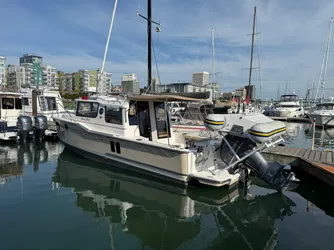 Cruising without compromise is the name of the game for the R-27 from Ranger Tugs. Straight from the factory, your R-27 will be outfitted to cruise, fish, and play in comfort and style. Powered by the efficient and popular Yamaha F300 outboard motor, the R-27 doesn’t waste time delivering you and your family to your next adventure. Enjoy peace of mind knowing that the included Garmin 8612xsv Chartplotter will guide you safely on your passage and that when you arrive, the bow thruster will make docking a non-event.
