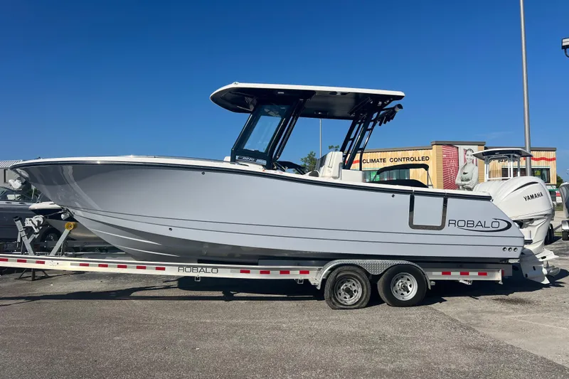 This is a beautiful Robalo R270 Center Console powered by twin Yamaha 250 HP 4-Strokes with Digital Electric Steering and Digital Throttle & Shift. This boat is absolutely loaded with incredible Electronics, Features & Options. It has two Simrad 9" Multi-Function Displays flush mounted in the dash. It has a awesome JL Audio Stereo with (6) Speakers and a 10" Sub. It also has a VHF Radio, Simrad SS175M Transducer, NMEA 200 Pkg for Engine data on Simrad Screens, & Underwater Lights. The boat has a very nice Side Entry Door w/ Ladder which makes it very easy boarding the boat from a dock or boat lift and getting out of the water. The rear cockpit feels very large & open and has an awesome fold down transom seat and a Wetbar / Bait Prep Station w/ a sliding cooler under it. Anchoring is nice and easy with the Windlass in the bow which also has a beautiful Polished Stainless Anchor.