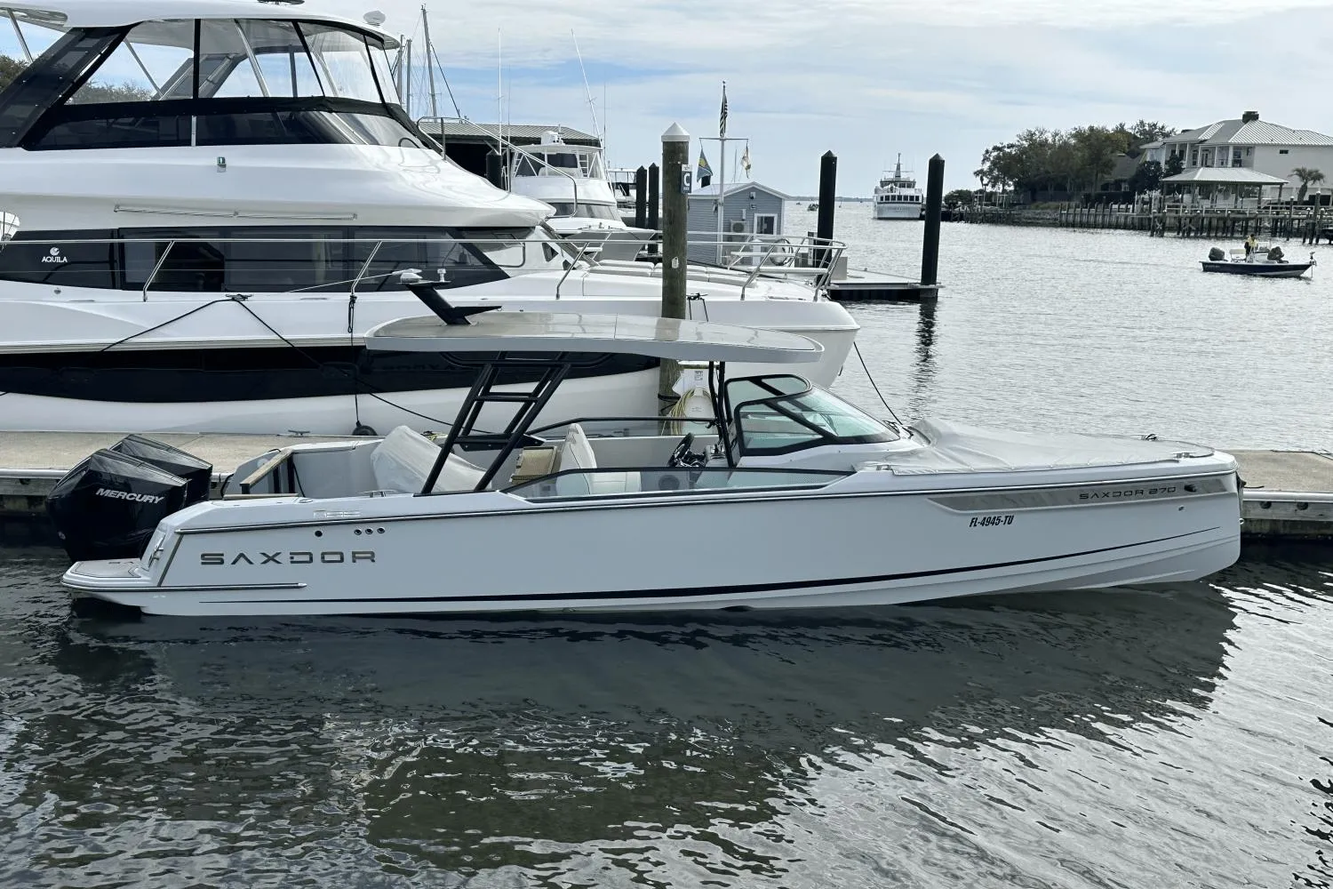 Inside Dry Stored at MarineMax Pensacola - 2024 Saxdor 27 with Twin Mercury Verado 200 HP V6 Digital Throttle and Shift engines "ONLY 89 HOURS"