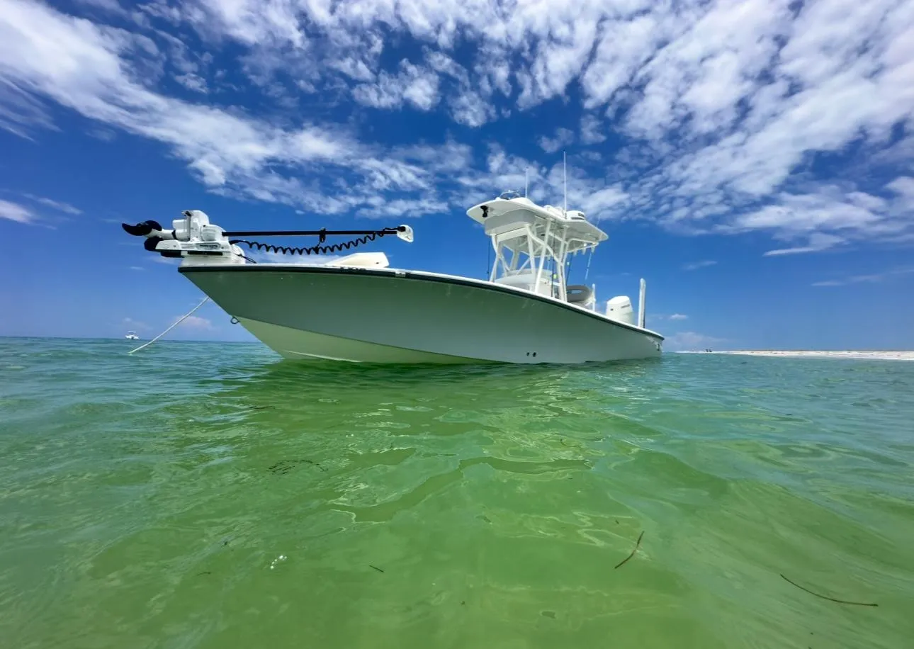 With Mercury White V10-400 Only 100 hours & Warranty Thru 5/29/2029+ Vessel View Upgrade to 502-5", Custom Hull Color, Custom Fiberglass Hard Top, White Powder Coated Pipe Work + Low Profile 2nd Station w/Removable Backrest & Underside Custom Color Light Gray, Full Controls & Simrad NSS EVO3S-9", 3-Sided Polycarbonate Console Enclosure, Lumitec Light Bar, Fresh & Raw Water Washdowns, Fiberglass Helm/Tackle Station w/Slide Out Frigid Rigid Cooler, 3-group 31 Brute force battery w/30 amp Shore Power & Dual Bank Onboard Charger, 3-Underwater Lights RGBW, 2-Livewells w/3-Pump Seachest, 1-Pull out dive ladder, 12-Console Rod Holders + 6-Gunnel Rod Holders,2-10' Power Poles, 72" Minn Kota Riptide Ulterra combo Trolling Motor w/I-Pilot + Auto Deploy & Lithium Battery Upgrade w/36v Charger, Electronics: Twin Simrad NSS EVO3S-12" GPS/Plotter/Depth/Radar, Halo 24" Dome Radar, S5100 Black Box for B275LH-W Chirp Transducer + Simrad Structure Scan 3D Module w/Transom Mt Transducer, Icom M400bb VHF, Mercury Vessel View Interface, JL Audio Package w/Hard Top Speakers, 4- 8.8 speakers, 2- 10' Subs Scanstruck Ph Charger,