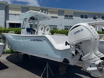 The 2025 Sportsman Open 262 stands out as a premier Center Console boat for sale, offering a spacious 26.5-foot layout that’s perfect for both serious anglers and families seeking fun on the water. With its sleek hull side in Ice Blue and a classic white bottom, this boat makes a statement whether you’re cruising the coastline or anchored at your favorite spot. The hardtop’s underside also features a matching Ice Blue finish, adding a touch of elegance and continuity to the design. As a new boat, the Open 262 promises pristine condition and the latest innovations from Sportsman, a brand renowned for quality and reliability.