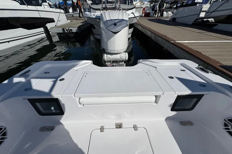 Storage and systems are laid out for real use. Multiple livewells, macerated fish boxes, a large coffin box forward, and dedicated tackle storage let you fish seriously without cluttering the cockpit. At the same time, premium seating, fold-up aft bench, freshwater washdowns, and a quiet, controlled ride make it easy to bring family or friends without compromise.