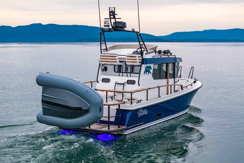This 2024 Targa 27.2 Flybridge is very clean, and has been well maintained throughout its one season on the water. A well-equipped, all-weather vessel powered by a single Volvo Penta D6-440/DPI. Comfortably cruise at 29 knots (top speed: 35 knots). It features a fully functional flybridge with dedicated helm, and a clean, modern pilothouse with dual 16” Garmin glass cockpit displays. Built for confident cruising in seas as they truly are, it is outfitted with bow thruster, Zipwake trim tabs, diesel heat, hot water, inverter/charger system, advanced Garmin electronics including radar, AIS, FLIR night vision, and IP camera, plus underwater and courtesy lighting throughout. A Highfield Ultralight tender with Torqeedo electric outboard on Weaver davits completes this turn-key Targa, offering capability, comfort, and refinement for year-round boating.