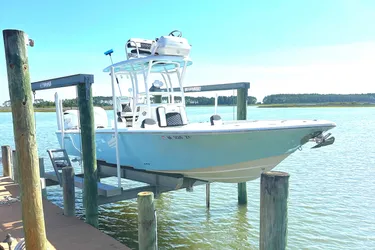 2021Tidewater 2700 Carolina Bay (Custom), designed for performance, fishability and comfort. Crafted with a durable fiberglass hull featuring a modified vee with a stepped bottom ensures a smooth dry ride across various water conditions. Powered by low hour twin Yamaha 300hp outboard engines, it achieves a cruising speed of 35 mph and a maximum hull speed of 55 mph making it perfect for thrilling adventures on the water.