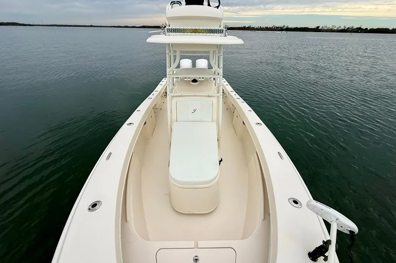 Built right here in Florida, the 2019 Young 27 was designed to be a true “Swiss Army Knife” fishing platform that is equally capable offshore, inshore, and everywhere in between. Known for its efficient hull and impressive 250+ mile range, this boat is set up to fish hard with large in-deck fishboxes, twin Power-Poles, and jack plates that make it just as effective stalking tarpon in the pass or working shallow water as it is running offshore. The clean layout, wide-open cockpit, and serious fishing pedigree make it a favorite among anglers who want one boat that can truly cover multiple fisheries without compromise.