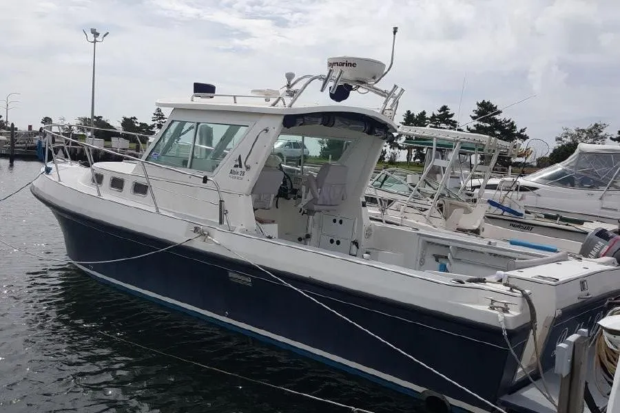 One of the most popular 28-foot cruisers ever, the Albin 28 Tournament Express combines classic Downeast styling with a spacious cockpit and a comfortable, well-appointed cabin. The Albin 28 TE is heavily built on a modified-V hull that flows into hard chines aft. The Flush Deck option moves the engine forward under the helm deck making for a large unobstructed cockpit. Below deck, the surprisingly roomy interior has the comforts of a larger boat with a full-service galley and large pilot berth to port, a standup head/shower to starboard, and a roomy U-shaped dinette converting to a full-size berth forward. Every detail of this design was well and thoroughly thought out to make it a true Classic.