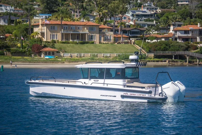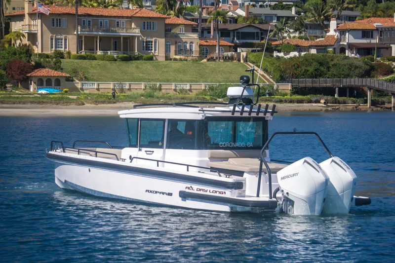 Axopar was the most sold boat brand in America for the 2025 calendar year, and for good reason. These boats are extremely versatile and offer an almost semi-custom level of options. The Axopar 28 uses a stepped hull design that allows for a smooth fast ride accommodating family and friends for almost any offshore adventure. Designed and manufactured in Europe, the fully enclosed pilothouse allows the vessel to be comfortably used all season especially in cooler conditions. Forward of the pilothouse is a head and sink with a small berth sized for 2 adults located behind the helm station. Handrails surround the gunnels with cushioned forward seating at the bow and a cushioned sun pad aft. The Axopar 28 is the watercraft supertool of its time and will keep you dreaming of family adventures offshore.
