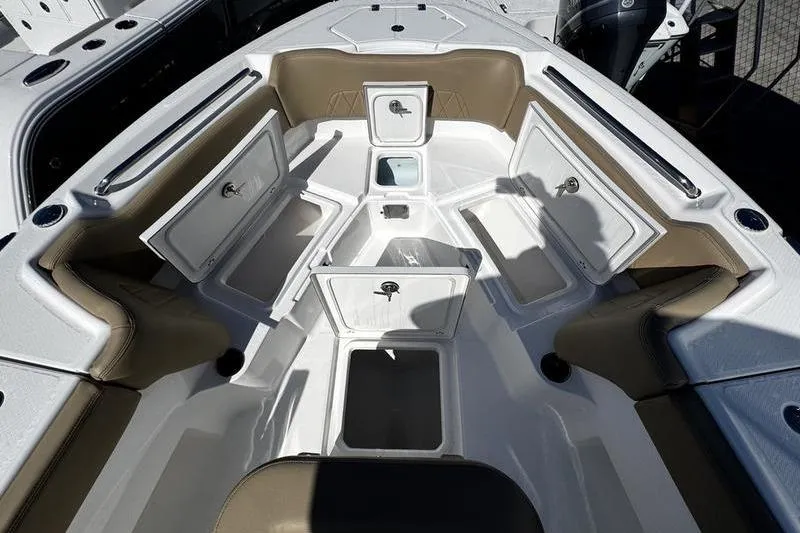The 2800 Makaira is the ultimate offshore hybrid boat, gaining its popularity from its unique open design, well-designed freeboard, and excellent fuel capacity. Not only that, but this boat is perfect for competitive fishing, whether you are outfishing other professional anglers or simply trying to be the one among your friends with the biggest catch. There are many high-performance features designed to make any angler drool including built-in rod storage in the gunwales. This boat is also able to take up to 600 hp and 135 gallons of fuel, giving you everything you need for a long day on the water. If your day runs particularly long, this boat also comes with a plus room for a porta-potty inside the console. Not only is the boat itself high-performance, but it is also designed to fit 11 passengers comfortably. Everything from the bow seating to the toe kicks and even an optional Frigid Rigid coffin box that doubles as a forward lounge seat allows for everyone to enjoy your fishing trip in style. Finally, there is plenty of space both on the deck and around the cockpit to make maneuvering around the vessel and catching fish comfortable.