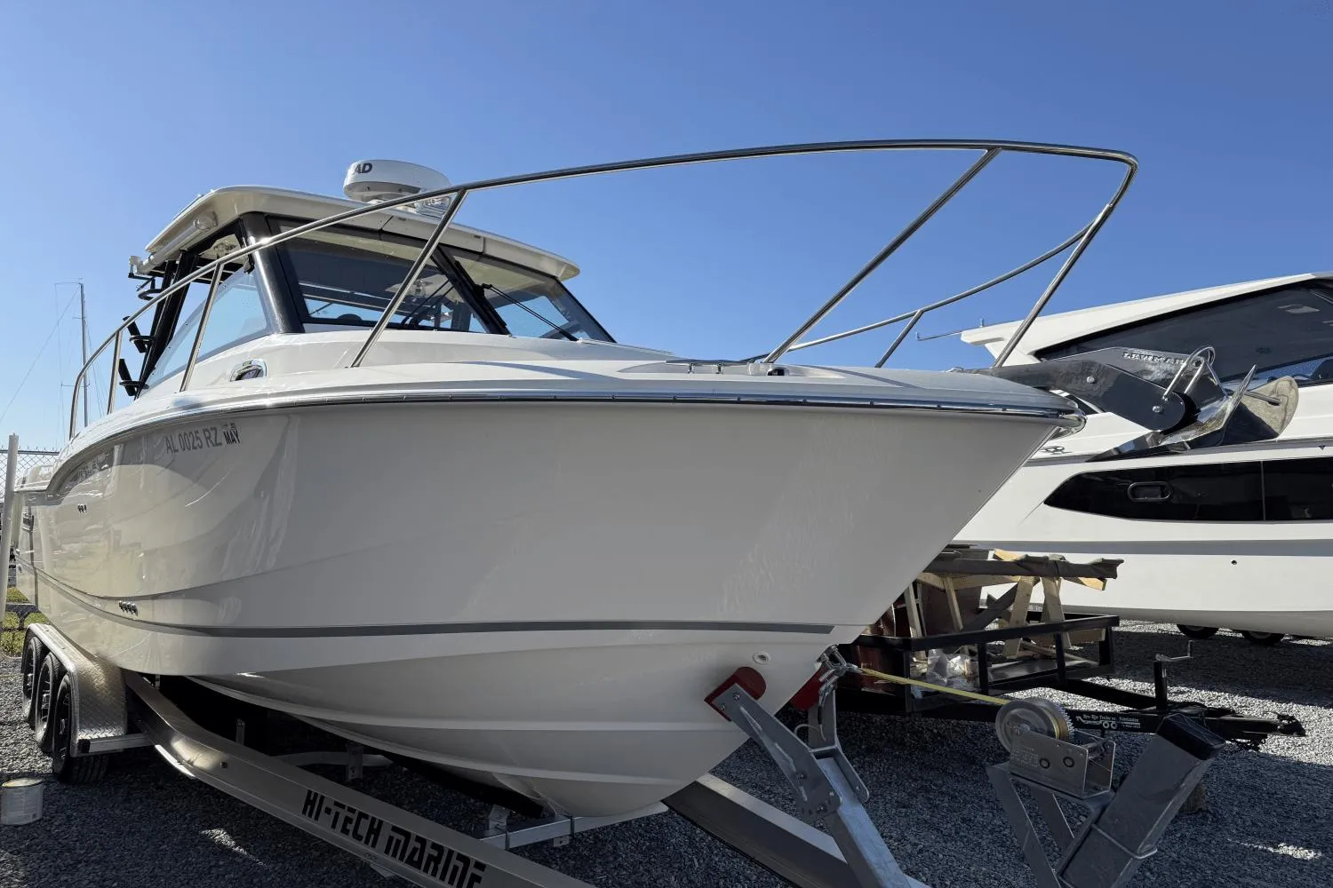 This 2024 Boston Whaler 285 Conquest just hit the open market with (1) hour which I sold Brand new. She is powered by a set of White JPO Mercury DTS V8 250's hp engine, She Has a Simrad 16" monitor with GPS, Map Plotter, sounder, Close Dome radar, Auto Pilot, VHF, Satellite weather and Radio, Bow Thruster, White Hull, White engines, Black Canvas, Blacl Frame, Stainless Steel Anchor, White Rub Rail with Stainless Steel insert, Sun Lounge on Bow, SunShade on back of Hardtop, Cruising Package, Air Conditioning, Port Cockpt Fold Out Beanch, Aft Fold out bench seat, Cockpit Refrigerator, Spotlight, Underwater lights, 12V Receptaccles at Transom, Radial Outriggers, Full set of Weather curtains, Sides & Aft Drop curtain, Generator, Premium Package, Hi Tech triple Axle trailer with Custom Wheels and V-Block. Been Kept in a climate Control Warehouse. Don't Miss this One!