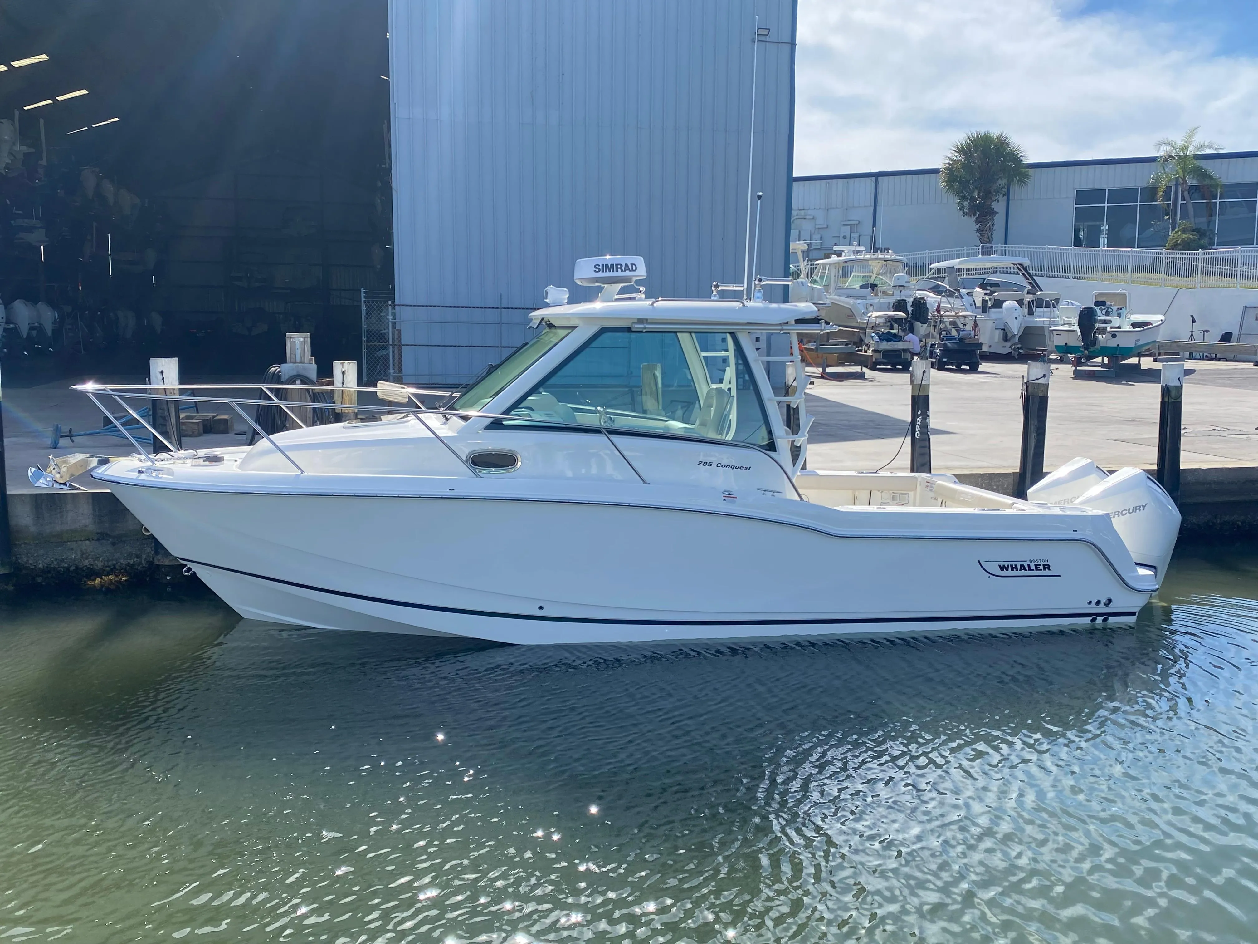 Featuring a thoughtfully designed layout, the 285 Conquest maximizes forward visibility and aft deck space, making it an ideal choice for entertaining and sportfishing alike. Equipped with an integrated Simrad electronics package, this vessel ensures seamless navigation and connectivity on the water.