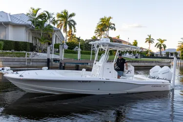 Introducing the 2022 Caymas 28 HB Twin, a remarkable saltwater fishing boat designed for enthusiasts seeking adventure on the water. With an overall length of 27.58 feet, this vessel boasts a sleek and efficient modified vee hull made from durable composite material, ensuring stability and performance in various conditions. Powered by twin 300 hp Mercury Verado outboard engines, each with only 95 hours of use, this boat promises exhilarating speed and reliability. The outboard configuration enhances maneuverability, making it ideal for both fishing expeditions and leisurely cruises. The Caymas 28 HB Twin is equipped with essential features that enhance your boating experience. Its thoughtful design ensures comfort and functionality, making it a perfect choice for those who appreciate quality craftsmanship and performance. Experience the thrill of saltwater fishing with this exceptional boat that combines power, style, and versatility.