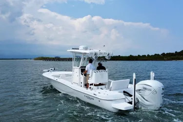 The Caymas 28HB is a perfect combination of pro-level fishability, distinctive contemporary styling, and family-focused comfort. Serious anglers will appreciate the 28HB’s huge nonskid casting deck, massive built-in storage compartments for tackle and gear. Family and friends will love the 28HB cushioned seating at bow and stern, and extra elbow room afforded by the boat’s 9’4” beam. The combination of high freeboard and deep gunnels for added safety and security, a rocking Kicker stereo system and a “butter-soft’ ride. This Caymas is in excellent condition, ready for all of your fishing needs!