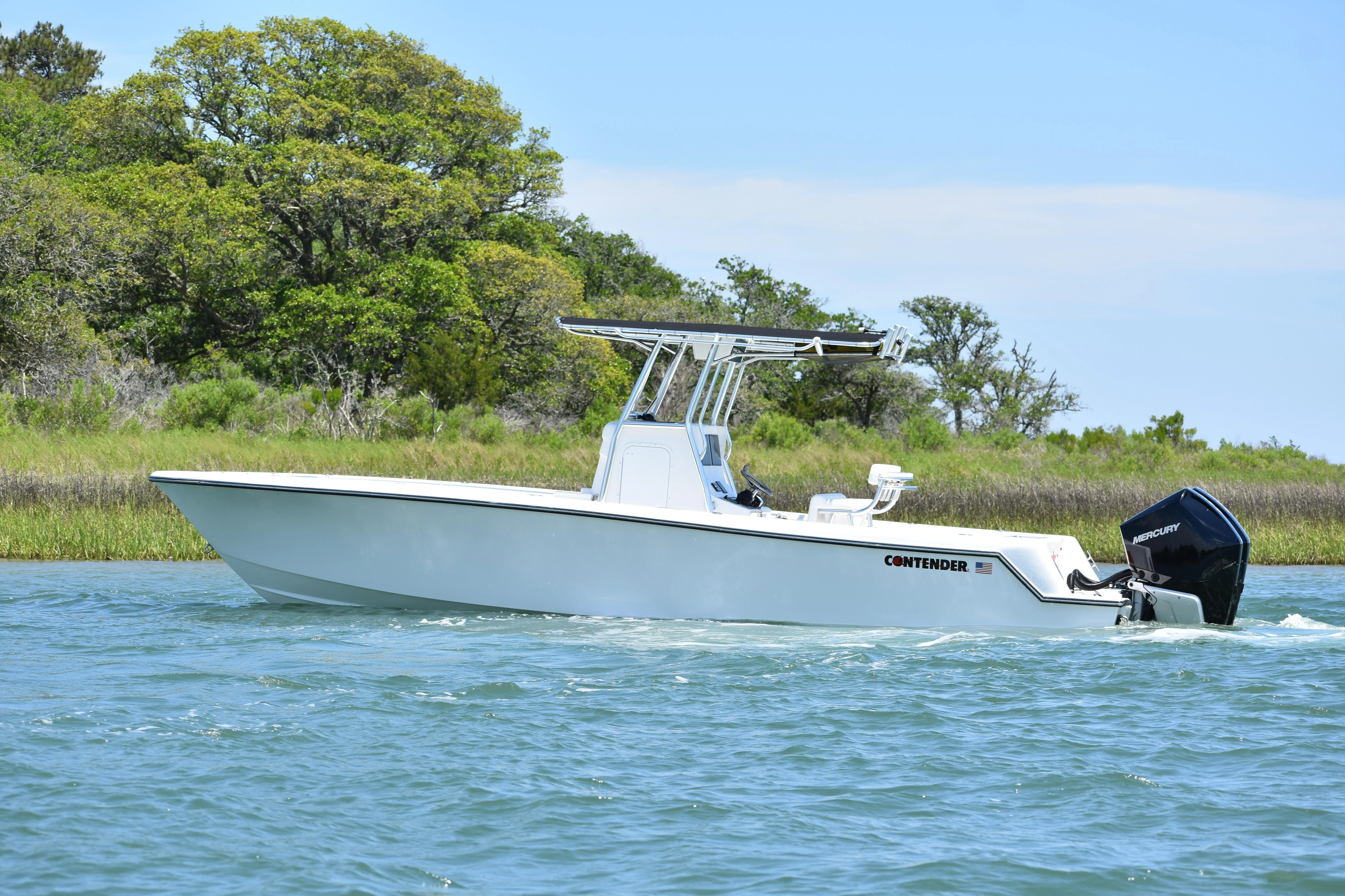 The Contender 28T is hand-built in Homestead, FL and is a center console classic. Built for speed, and built to last, the hull goes to sea with a ride like no other. Every Contender is built to order. Built with the options you want to make it your boat. Every Contender is built using hand-laid fiberglass with an attention to detail in hull ride that keeps captains and customers coming back. The build process is not an automated assembly line that offers no options. Our model options make every boat unique with the personality and style to make it your own. Built for speed, range, and finding big fish in blue water. The 28T is the ride designed to take you beyond the jetty, and into the deep blue.