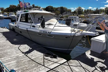 This low hour, two owner Cutwater is a nice example of one of Cutwater’s most popular models ever produced. The Cutwater 28 with single inboard 260 hp Volvo diesel is efficient and stable. The Cutwater 28 has an unusual hull design which is a modified-V that is stepped with single centerline propeller pocket that is protected by a keel.