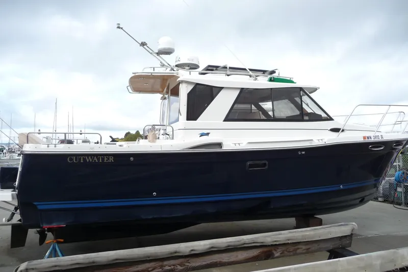 2017 28’ Cutwater C28 Powered with Volvo Inboard Diesel D4-260I 3.7L 260hp 674 hours. This Cutwater well cared for she shows very well in the midnight blue. Garmin 7600 GPS/Sounder/Radar, Garmin Auto Pilot Webasto Deisel heater, Garmin VHF radio, Fusion radio, Tracvision Satellite TV antenna, RIB Dinghy on davits, Electric Windless, Bow and stern thrusters, Aft Controls, Full canvas back with enclosure also a full boat cover. Boat was stored on a boat lift in fresh water. Regular maintenance performed. Fantastic northwest and Island cruisers with these plush boats you can have extended family trips.