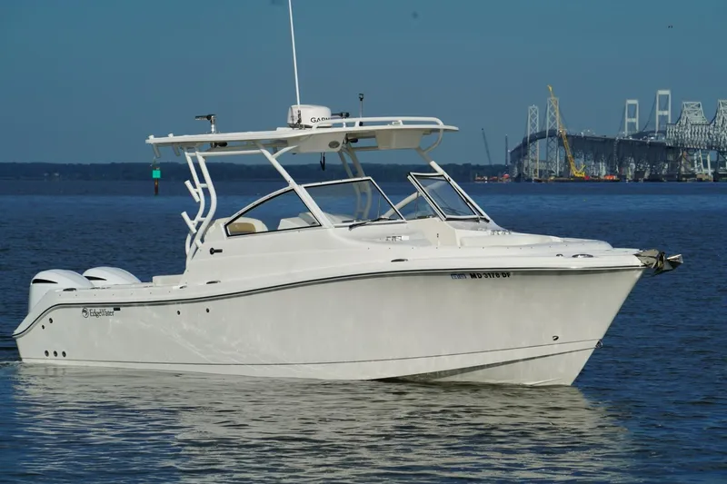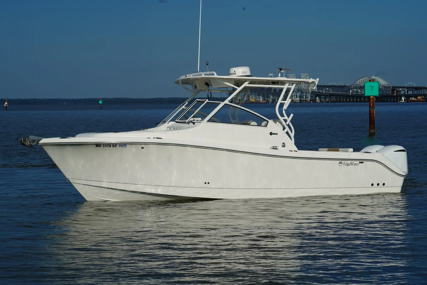 This 2016 Edgewater 280 CX is the ultimate dual console, blending offshore capability with family-friendly comfort. Built on Edgewater’s legendary deep-V hull with Single-Piece Infusion construction, she’s strong, stable, and ready for anything from cruising with family and friends to serious fishing trips offshore.