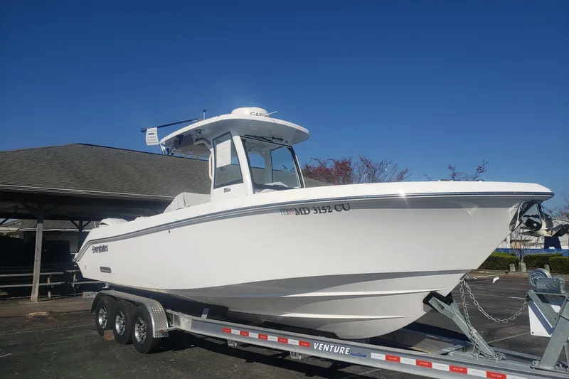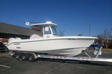The 285cc’s timeless exterior design, rich accents, and fish-fighting posture are recognizable from any distance. Its spacious bow features plush upholstered lounges with teak accents and recessed in deck storage that quickly converts into an immense casting deck or spacious sun pad. An advanced helm station provides complete control with dual Garmin® displays and proprietary digital switching. The aft offers versatility no other fishing boat can boast, with an exclusive rotating helm / mezzanine seat and loads of fish-focused storage. From comfortable evening cruises to offshore excursions, the 285cc features new standards in comfort and performance.