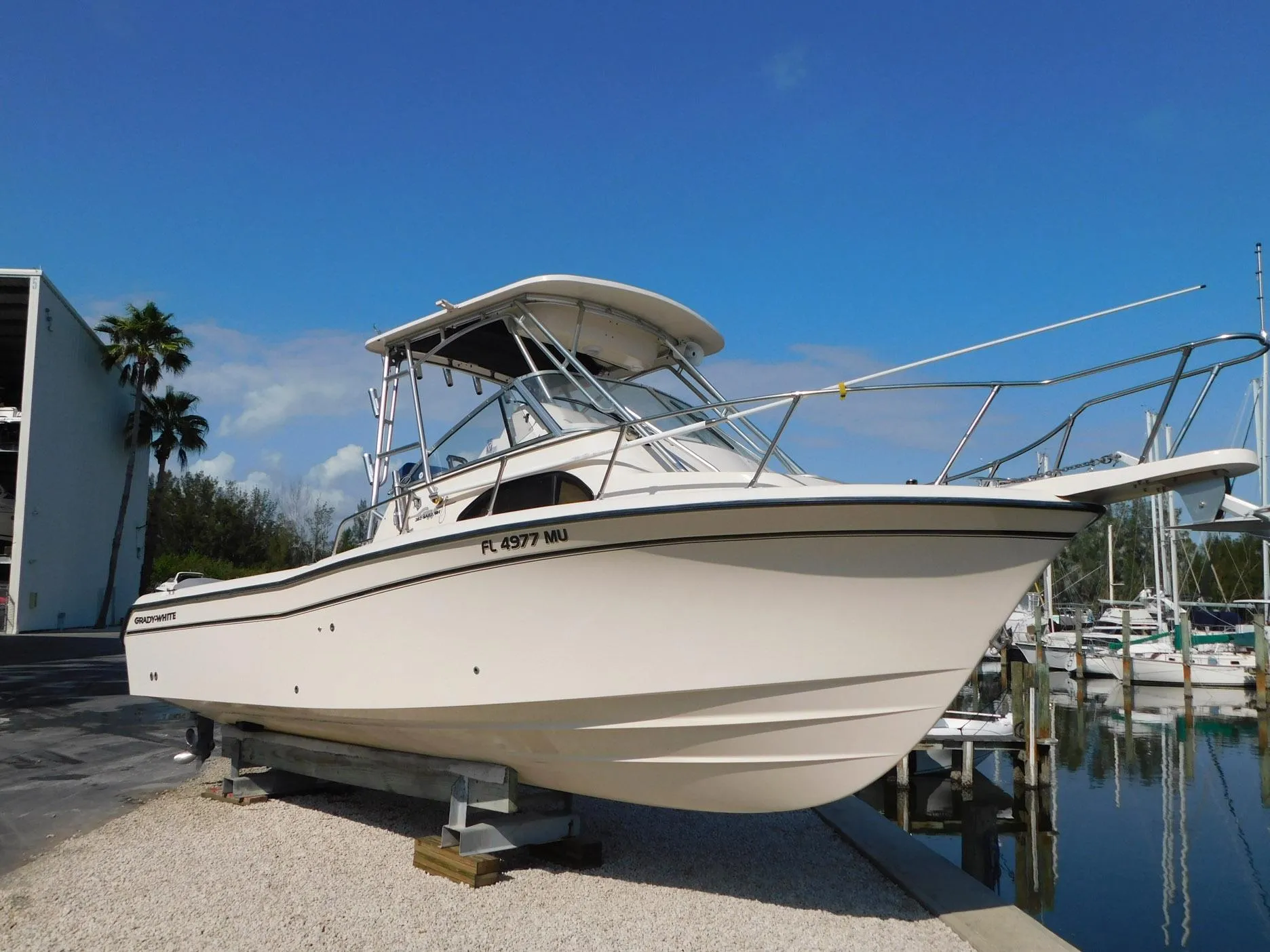 2005 Grady White 282 Sailfish, Re-Powered by 2019 Twin Yamaha 300 HP Four Strokes with only 374 hours, Includes Fiberglass Hardtop, Full Enclosure, Garmin/GPS Plotter/Fishfinder, Simpson Lawrance Windlass, Optional Companion Lounge Seat, Live-Well, Rear Seating, Washdowns, Rod Storage, 30 amp shore power, battery charger. The cabin is well-appointed, Teak and Holly Floor, V-Berth with table table, Aft Berth, Head, Vanity Sink and Shower. The galley is to port with Corian Counters, Sink, 110/12volt Fridge, Microwave, and Single Burner Cooktop, with Float On Tandem Axle Trailer with Disc Brakes and Spare. Like New !!!!