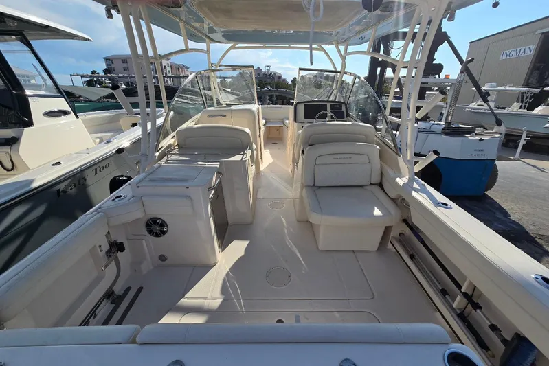 Grady-White’s dual console offshore boats are truly the most versatile, luxurious boats on the market, and the redesigned 28-foot Freedom 285 is no exception. With its wide beam, open cockpit, and plentiful features including plush seating and a port side cockpit door with boarding ladder, the 285 delivers on both comfort and innovation. Fully outfitted for fishing, water sports, or just cruising the waterfront, this sleek and sporty boat is a pleasure to drive and reliable in all sea conditions because it sits on Grady’s signature SeaV²® hull.