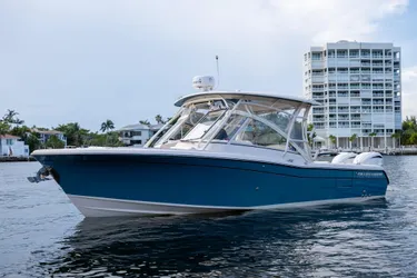 This vessel comes fully loaded with every factory option, making it ideal for both serious offshore fishing and family cruising. The spacious layout includes a plush bow seating area, aft foldaway bench, enclosed head, and premium helm and companion seating. With Grady-White's legendary SeaV²® hull, you’ll enjoy an exceptionally smooth and dry ride.