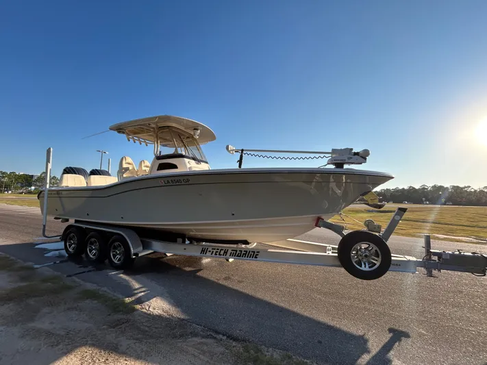 This 2023 Grady White 281 Coastal Explorer just hit the open market and she is like in in the box with all of the options you can get. She is power ba a set of Yamaha FM 300's with only 107 hours and comes with a Hi-Tech tandem axle trailer and she has Dual Garmin 8616 with GPS, Map Plotters and sounders. She has Joystick control for easy docking and has Set point, drift point and fish point for holding you over your favorite spot for catching fish, has auto pilot , Garmin Radar and VFH radio, Has dual matching white power poles, Nite vision, Swim pation, forward seating with cashing platform with cushion and power back rest, Hard top with front and rear spreader lights, Under water lights, dive ladder, Stain Steel windalss, Troliing motor with Spot lock, large heah with pump out and teak & holly floors, storage, Fusion Stereo, Trim tabs with LED indicators. She is detail and reading for her next owner. Don't miss this one.