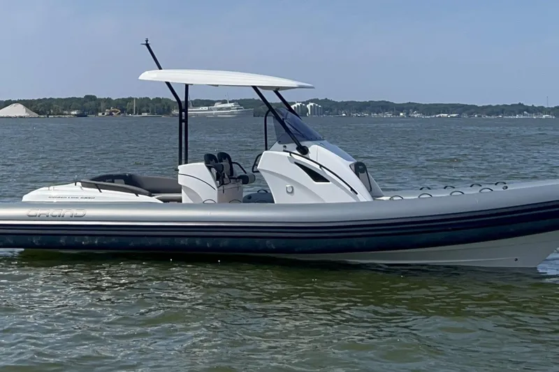 The G850 is an amazing RIB. Powered with a Mercury V10 400hp Verado she is quick to plane (3 second hole shot 0 to 30mph) and will hit a top speed of 65mph. Her size and layout are perfect for extended cruising as well as lounging about. Water sports are a blast on a Grand due to their handling and limited bow rise.