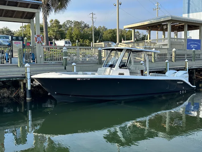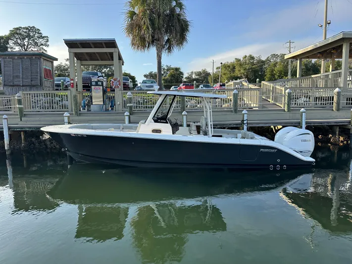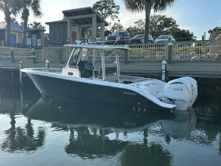 The 2023 Pursuit 288 S is a center console sportfisher designed for anglers and cruisers who want a rugged, capable offshore boat that’s also comfortable for family outings. It’s part of Pursuit’s “Sport S” lineup, known for sleek styling, premium build quality, and thoughtful functionality on deck and below. Powered typically by twin Yamaha 300 HP 4 stroke outboards, the Pursuit delivers solid offshore performance — including cruising in the upper 30 mph range and a top speed exceeding 50 mph in many configurations.