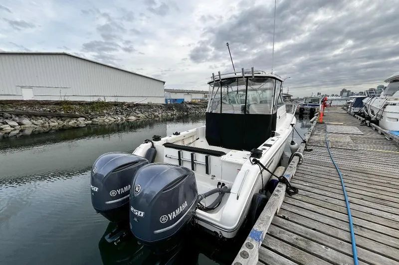 Twin Yamaha 250s (approx. 1,400 hours) give the boat a smooth, balanced feel with strong