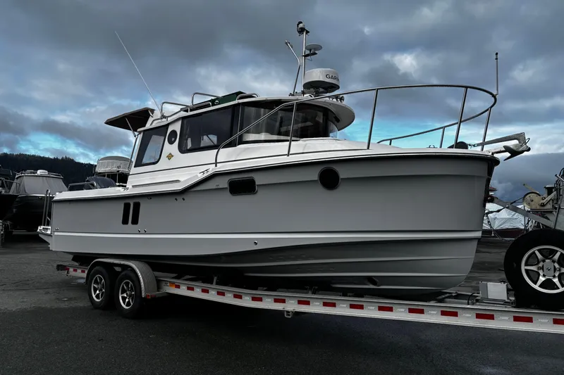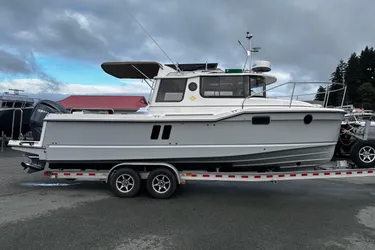The R-25 is a feature-packed cruiser designed for comfort, ease of use, and FUN! You'll find the Ranger Tugs DNA built into every facet of the R-25's thoughtful design. Right away you'll notice one of the most innovative features of the R-25, our Clear-Path swim platform. The extended swim platform wraps around the outboard lo present a clear walkway free of all engine rigging, which opens a whole new world of fishing, cruising, and water-sports opportunities. This exciting new design features heavy duty handrails and allows you to safely and easily board a dinghy, net a fish, step to or from a low dock (important for pets), and med-tie without fear of damaging your outboard and having to leap to the dock. The main salon on the R-25 is light and bright, making it a perfect spot to relax or entertain. The dinette seats four or converts to a bed for two. The forward stateroom is private and comfortable featuring a large bed, opening hatches for airflow, reading lights, and a TV. The R-25 features a fully enclosed head equipped with an electric marine toilet, sink and shower. There's even a spacious quarter berth with a removable mattress that can be used to accommodate guests/kids or for expanded storage. An electric/alcohol stove top, refrigerator/freezer combo, microwave, and sink with hot and cold water, make food prep fun and easy. The easily trailerable Ranger Tugs R-25 is a fantastic boat for cruising, fishing, and fun on the water. The private head, extended swim platform, multiple sleeping areas, and full galley give you everything you need to get away from the dock and spend some serious quality time with (or without) your friends and family.