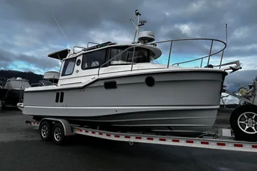 The R-25 is a feature-packed cruiser designed for comfort, ease of use, and FUN! You'll find the Ranger Tugs DNA built into every facet of the R-25's thoughtful design. Right away you'll notice one of the most innovative features of the R-25, our Clear-Path swim platform. The extended swim platform wraps around the outboard to present a clear walkway free of all engine rigging, which opens a whole new world of fishing, cruising, and water-sports opportunities. This exciting new design features heavy duty handrails and allows you to safely and easily board a dinghy, net a fish, step to or from a low dock (important for pets), and med-tie without fear of damaging your outboard and having to leap to the dock. The main salon on the R-25 is light and bright, making it a perfect spot to relax or entertain. The dinette seats four or converts to a bed for two. The forward stateroom is private and comfortable featuring a large bed, opening hatches for airflow, reading lights, and a TV. The R-25 features a fully enclosed head equipped with an electric marine toilet, sink and shower. There's even a spacious quarter berth with a removable mattress that can be used to accommodate guests/kids or for expanded storage. An electric/alcohol stove top, refrigerator/freezer combo, microwave, and sink with hot and cold water, make food prep fun and easy. The easily trailerable Ranger Tugs R-25 is a fantastic boat for cruising, fishing, and fun on the water. The private head, extended swim platform, multiple sleeping areas, and full galley give you everything you need to get away from the dock and spend some serious quality time with (or without) your friends and family.