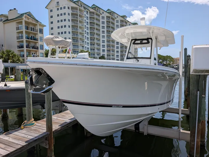 This 28 Regulator is dialed in and ready to fish or cruise today. Meticulously maintained with all service records, regularly updated electronics, and key mechanical upgrades already done — just turn the key and go. SiriusXM weather antennas to new safety gear, fans, and covers, this boat has been thoughtfully improved by an experienced owner.