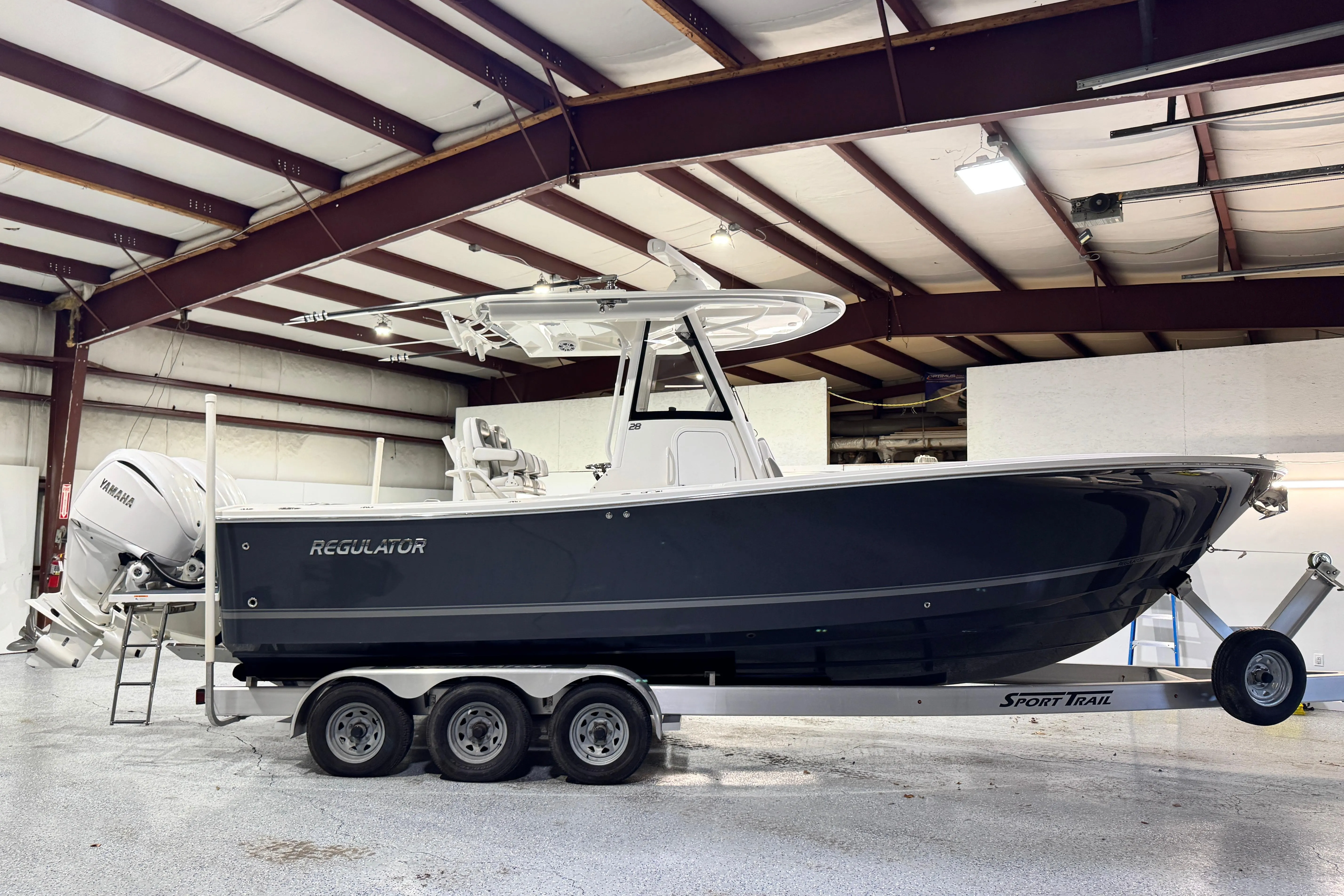 Step up performance with a fishing machine built for offshore action. With its sharp bow entry and Lou Codega-designed hull, Regulator’s signature ride comes standard. The new Yamaha Helm Master® EX option delivers AutoPilot with Waypoint Deceleration, allowing you to slow your approach and shift easily to Multimode Set Point™ - a seamless integration that makes it easier than ever to maintain your position for rigging baits and more. Our 28 Tackle Center, seatback rod holders, optional T-Top rocket launchers, and Taco® Grand Slam outrigger upgrade create an ideal rigging station for a group of anglers looking for offshore action. The transom walkthrough tuna door provides flexibility for both boarding and fishing, with our flip-up forward seat backrests, optional forward sun shade, and cockpit SureShade® and 28 sunbed table adding an extra degree of comfort as you pursue the Offshore Life.