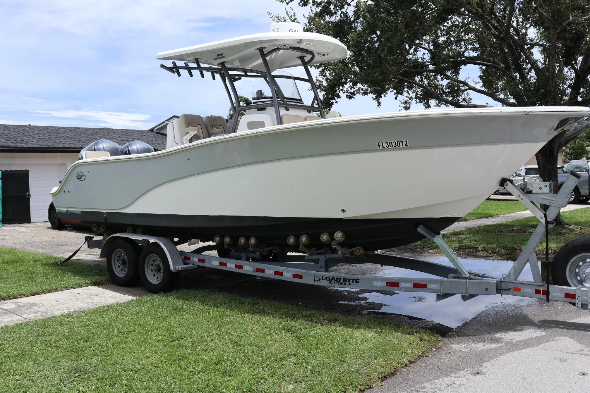 This 28 Sea Fox is a very versatile and well equipped center console that has ample seating and storage. She is equipped with dual Garmin 10 in displays and Low hour and reliable Yamaha 250’s (390Hrs) and the trailer is included. She has been recently detailed along with recent engine service performed and ready for her next adventure. If you are in the market for well built good riding boat that is truly turn key and ready to go make your appointment for a showing today you will not be disappointed.