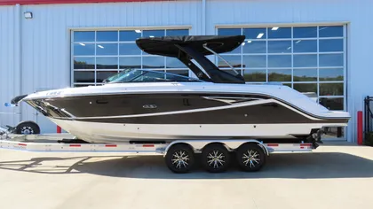 2023 Sea Ray SLX 280 powered by a Mercruiser 430hp 8.2 with only 75 hours. Bravo Three dual prop, underwater lights, transom speakers, transom seadek, cockpit sea grass, submergible swim platform, windlass anchor, JL audio tower speakers, Simrad GPS, Fusion stereo, accent lighting, Pump out macerator head, sink, power tower, drawer refrigerator, and much more!